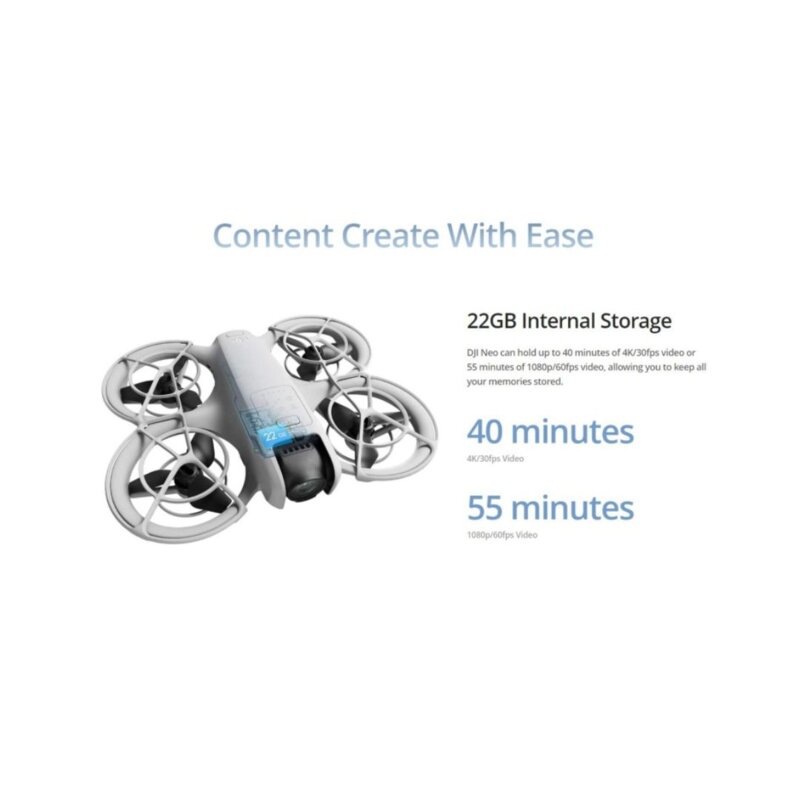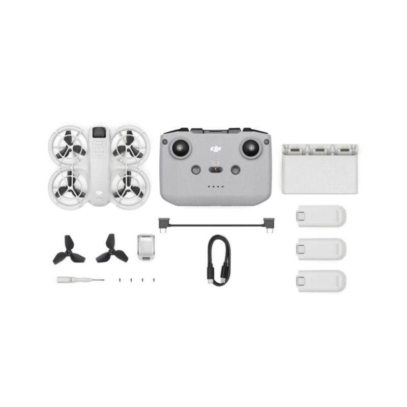 Experience DJI's lightest and most compact drone to date, weighing in at just 135g. Takeoff and land on your palm effortlessly without a remote controller, and capture 4K cinematic footage with you in focus. Soar through breathtaking scenery, indoors and out, and be sure to include everybody in a group photo. The Fly More Combo includes the Neo drone, RC-N3 Remote Controller, 3x intelligent batteries, 2-way charging hub and more. REASONS TO BUY DJI Neo Fly More Combo: Palm Takeoff & Landing AI Subject Tracking, QuickShots Multiple Control Options with RC-N3 Controller, 3x Intelligent Battery and Battery Charging Hub Photo Resolution: 12MP Video Quality: 4K @ 30fps Weight: 135G Flight Time: Up to 18 Minutes IN THE BOX: x1 Aircraft x1 RC-N3 RC Controller x1 RC-N3 RC Cable x3 Intelligent Flight Battery x1 Two-Way Charging Hub x1 Propeller Guard (Pair) x1 Spare Propellers (Pair) x4 Spare Propeller Screws x1 Screwdriver x1 Gimbal Protector x1 Type-C to Type-C PD Cable