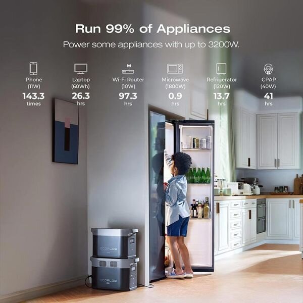 | Compatible Devices | Powers all devices supported by Delta 2 Max — fridge, fan, TV, laptop, phone, etc. |