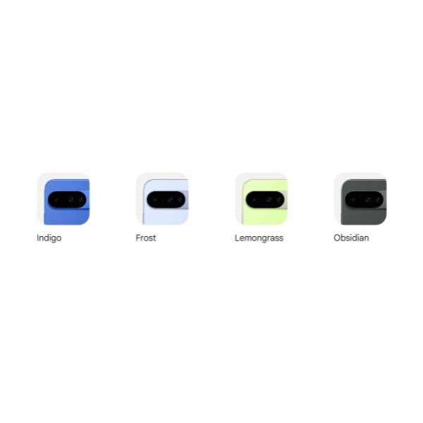 Fast charging up to ~55% in ~30 minutes with 30W USB-C PPS charger (sold separately); Pixelsnap wireless charging (Qi2) up to 15W. Colors: Indigo, Frost, Lemongrass, Obsidian. |