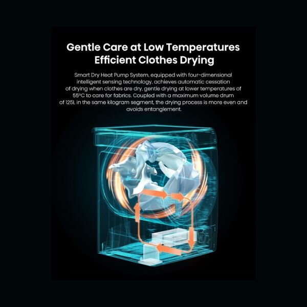 With advanced heat pump technology, it gently recycles heated air to dry your laundry, protecting fabrics while drastically reducing power consumption.