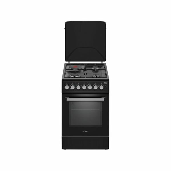 The MIKA MST5060P33EBL stands out with its wide cooking area of 50cm and heavy-duty matt finish burner caps. The wide enamel-coated pan support and adjustable feet ensure stability and compatibility with various kitchen setups.