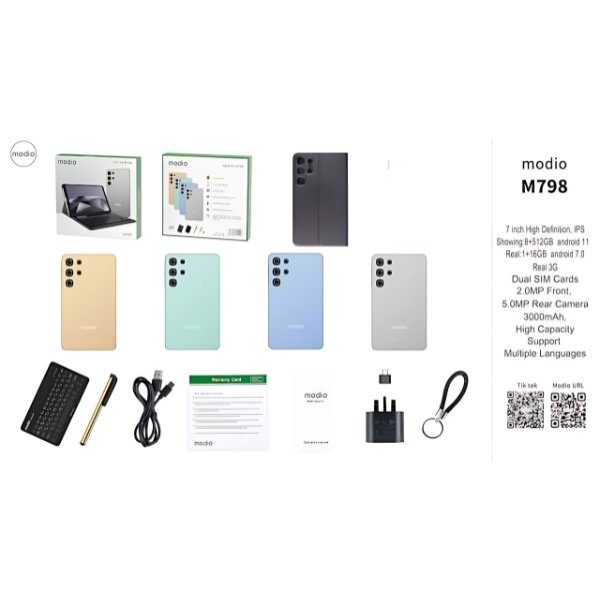 The Modio M798 Kids Tablet is a child-friendly Android device designed for learning, entertainment, and safe browsing.