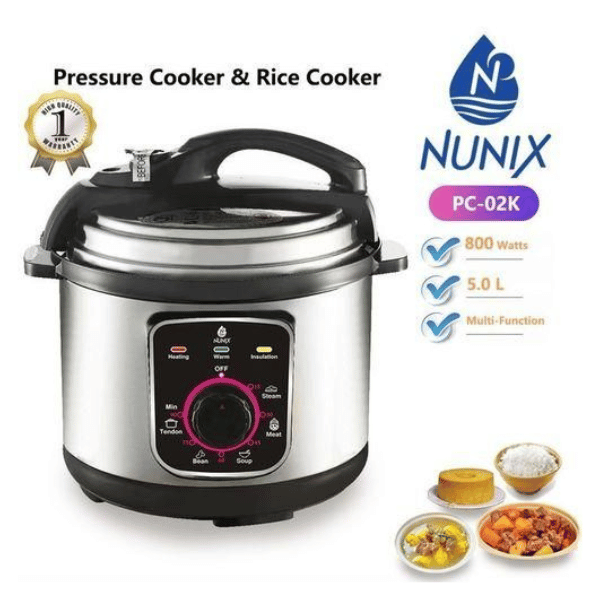 The Nunix PC-02k Electric Pressure Cooker boasts a 5-liter capacity, making it ideal for preparing meals for families or hosting small gatherings. Whether you're cooking rice, stew, or soup, its ample size ensures that everyone is served with ease.